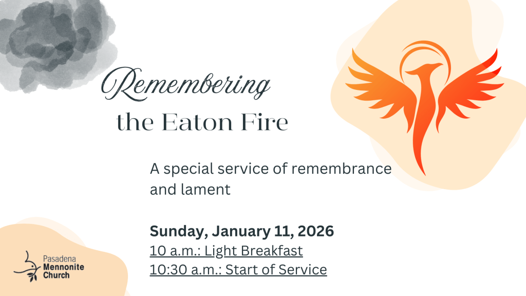 For Sunday Zoom link info, email: office@PasadenaMennonite.org (by Friday).