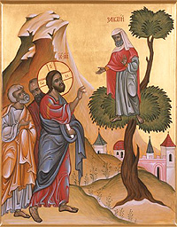 There are lots of ways we can talk about the sort of exclusion the crowd engages is (and I talk about a few ways in the sermon), but there is no doubt about it, the crowd is involved in dividing space, it emphasizing division, inside and outside, and keeping people from accessing Jesus. It defines who is in and who is out, and Zacchaeus is on the outside. Jesus, however, calls to Zacchaeus in a way that overcomes his spatial marginalization and brings him not just into the crowd, but to the center, the place of most importance and honor.
