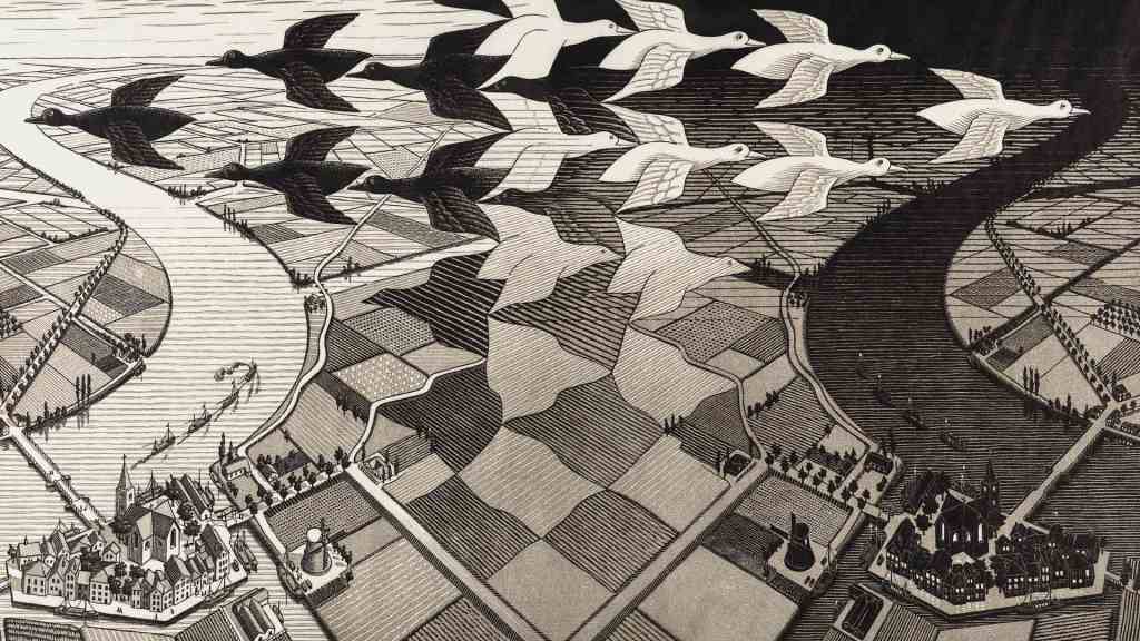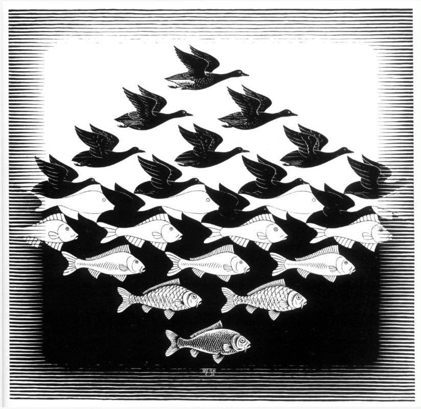 In the Gospel reading of Luke 16:19-31 we hear of a similar story. Near the early 30’s of the first century a thirty-something year old rabbi from Nazareth set his eyes toward the gates of Jerusalem. He had preached his way through this Mediterranean, Roman coastal possession from the Galilean Sea. And now he travelled to the capital city of Jerusalem, in Judea. And as he journeyed toward the gates of Jerusalem, he observed the structures and patterns of the world around him. In response he illustrated the structures and patterns of the world to come. He became known to the world as Jesus Christ, the creator of elaborate parables and imaginative homiletic structures that stretched and contorted the City of Man, warping it upside down and inside out into the City of God. Christ saw that, like Alhambra, the walls that held up the societal structures of Jerusalem were built by the religious rulers. Covering the pillars of the Law, the Pharisees overlaid patterns of greed and self-serving bias. In response Jesus drew to himself a people of God and self-sacrifice. Jesus and M.C. Escher both employed the art of illustration. It is important here that we recognize that a parable is a sermon illustration. Jesus used sermon illustrations to redraw how we imagine the world that we see around us. Just like M.C. Escher’s tessellations, Jesus’ parable in Luke 16 follows the principles of patternmaking. The way that they work starts with a main figure and focal point that we can call the subject of the imagery. The subject is defined by the barriers surrounding him. The secondary figure beyond the barrier of the subject (and not a focal point) is in the negative space. But in the repetition of the pattern the subject and the secondary figure switch places. Theologically this pattern is sometimes referred to as “the Great Reversal.” And as we will see, it repeats itself over and over in Scripture.