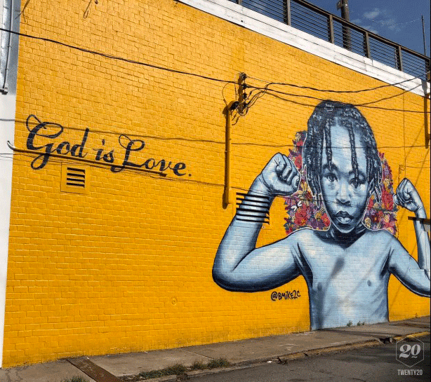 The mural on the introduction to this article, as well as above, are the work of Brandon Odums, Studio Be, @bmike2c